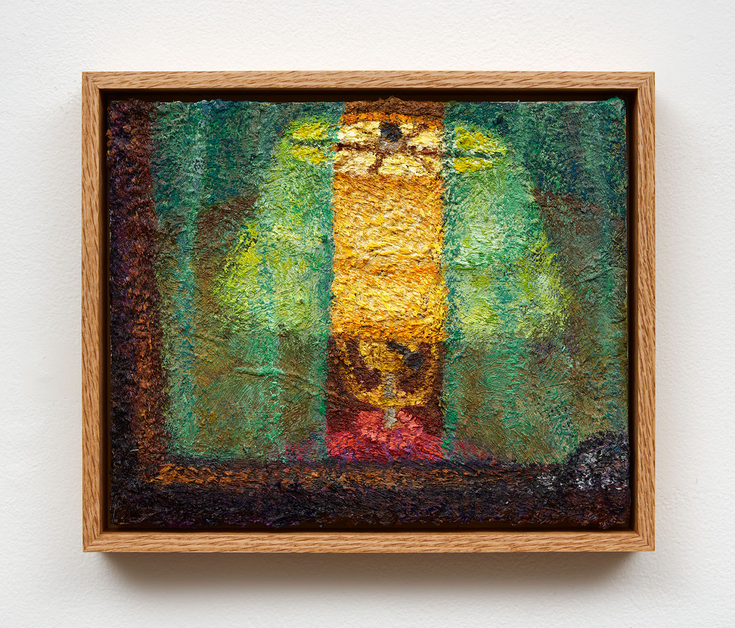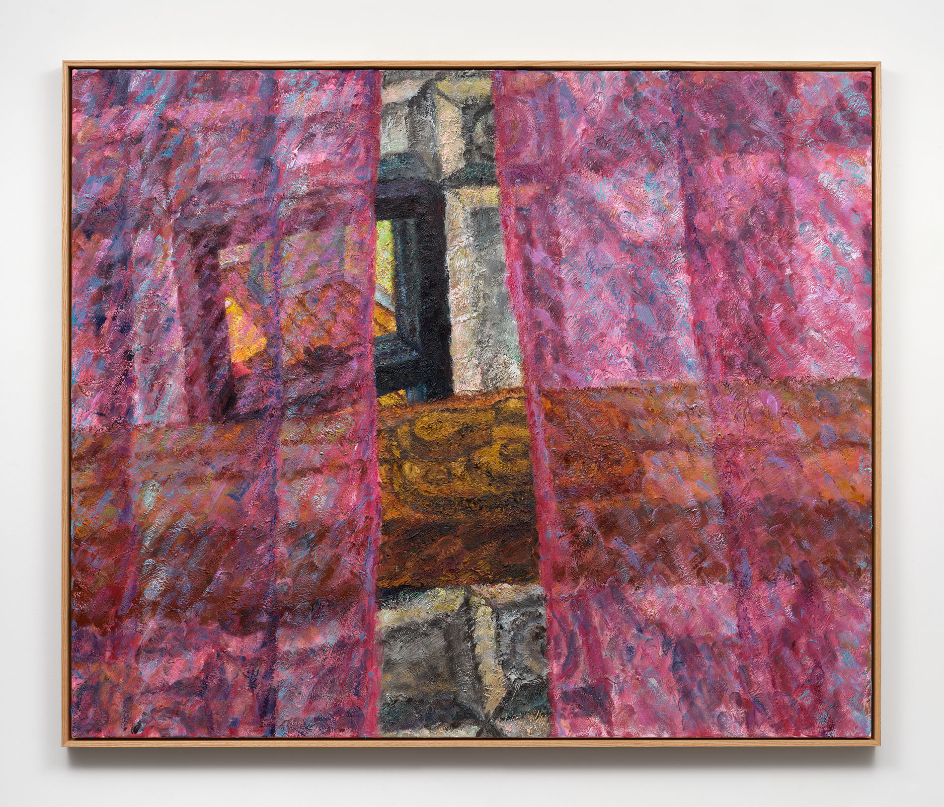 Keegan Monaghan’s richly textured paintings depict alternately close-up or expansive views of ordinary places and things, rendered extraordinary through tightly cropped compositions and perspectival innovations that situate the viewer in incredible proximity to his uncanny scenes. Monaghan’s subjects teeter on the edge of the unfamiliar, approaching the surreal, while remaining close at hand. Carefully balancing light and shadow with saturated color, the artist lays his paint on thick, building layers of rich impasto texture. Monaghan’s ceramic sculptures and works on paper share an emphasis on tactility and a thorough examination of a single subject, prompting us to consider different ways of perceiving the world around us.