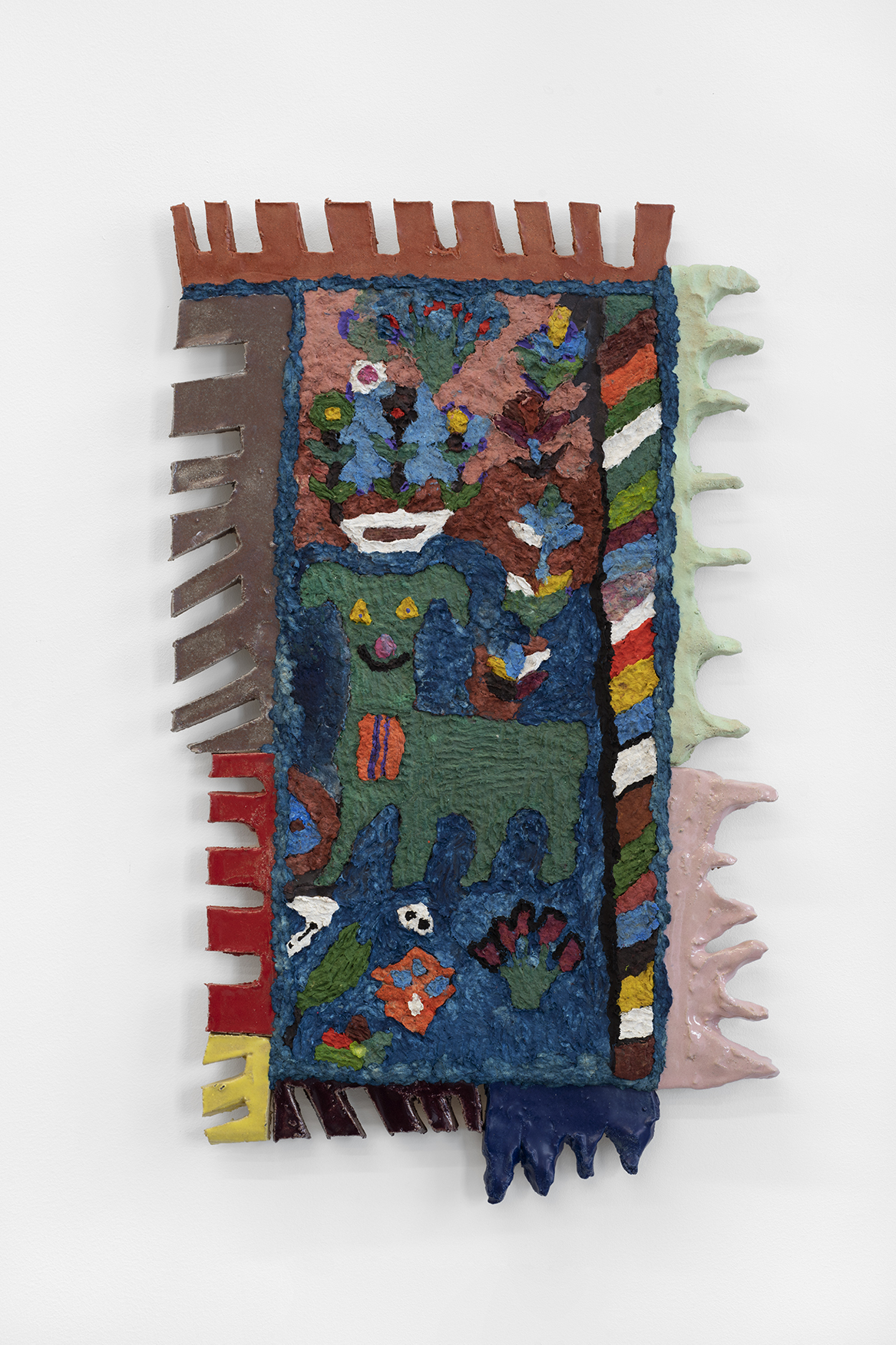 Sahar Khoury (b. 1973 in Chicago, IL, lives in Oakland, CA) explores the interdependence of materials and their social and cultural environments. Frequently bringing together unlikely objects, she utilizes strategies of assemblage and an ethos of multiplicity. Her works are constructed from materials as diverse as metal, clay, cement, and papier-mâché, and trace familial and global histories, food, music, and systems.